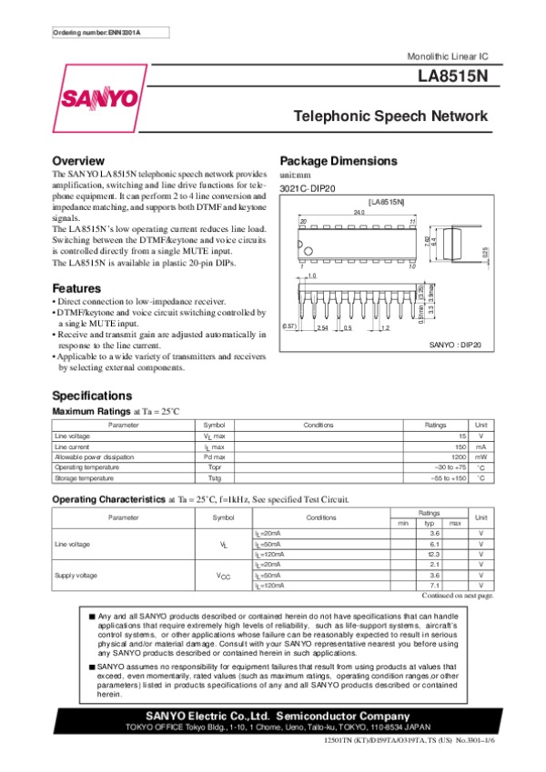 Datasheet LA8515N: