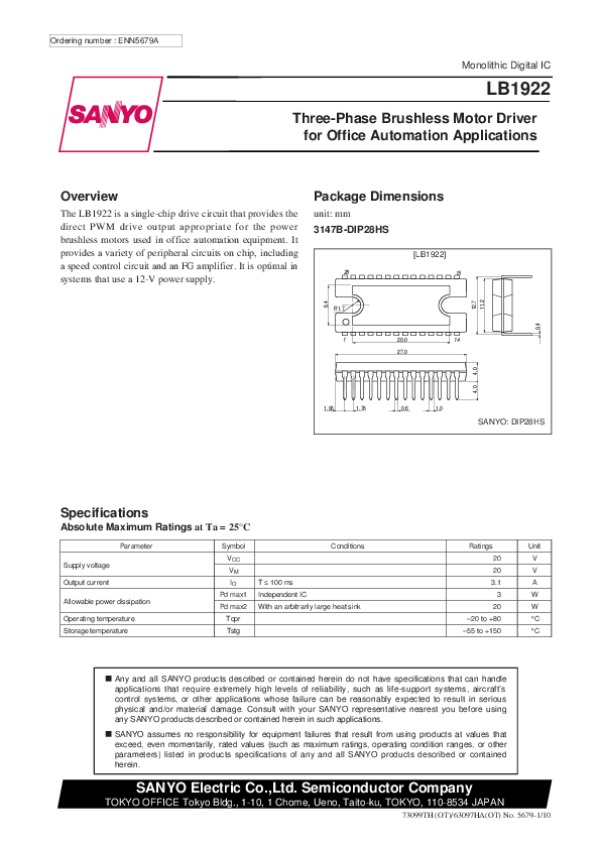 Datasheet LB1922: