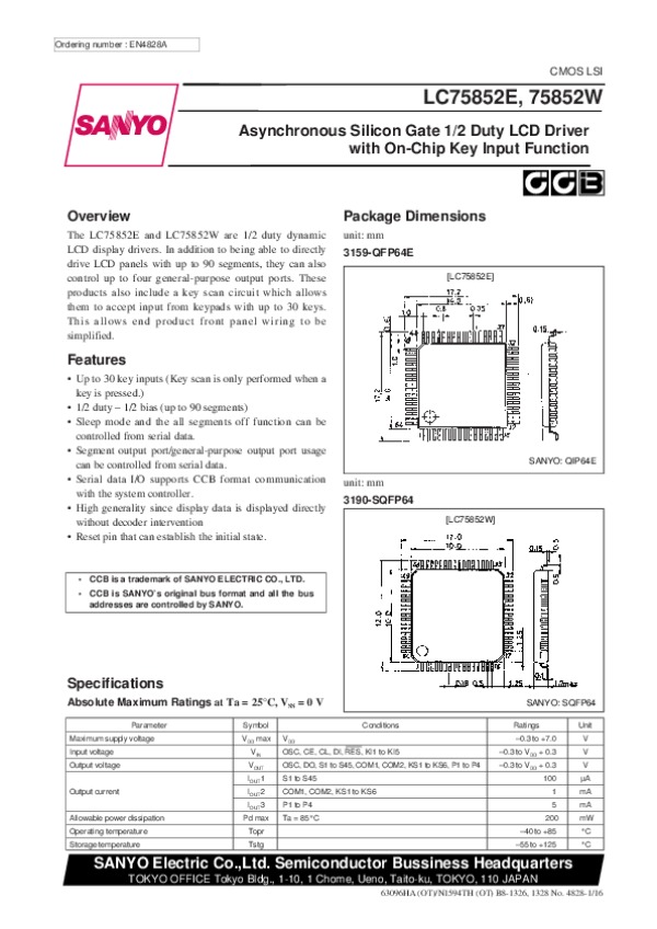 Datasheet LC75852W: