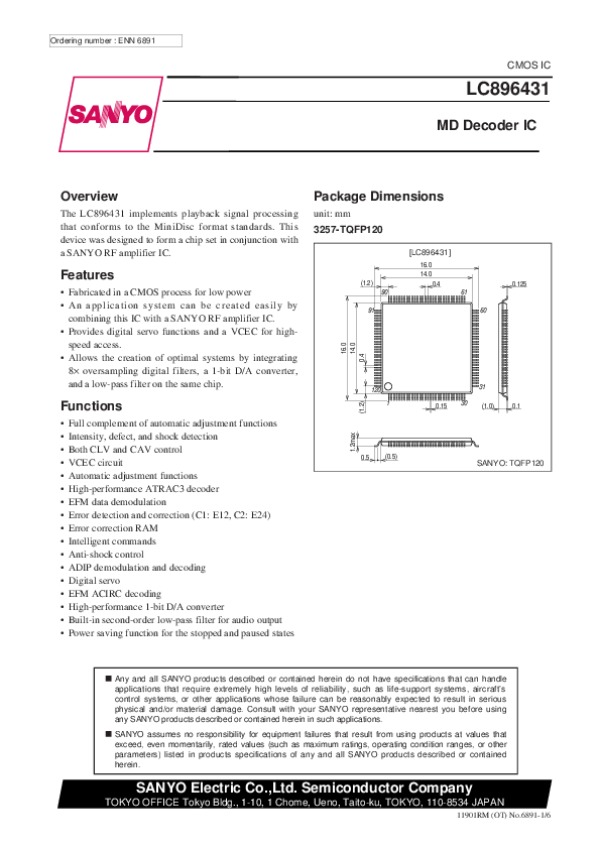 Просмотр технического описания на LC896431