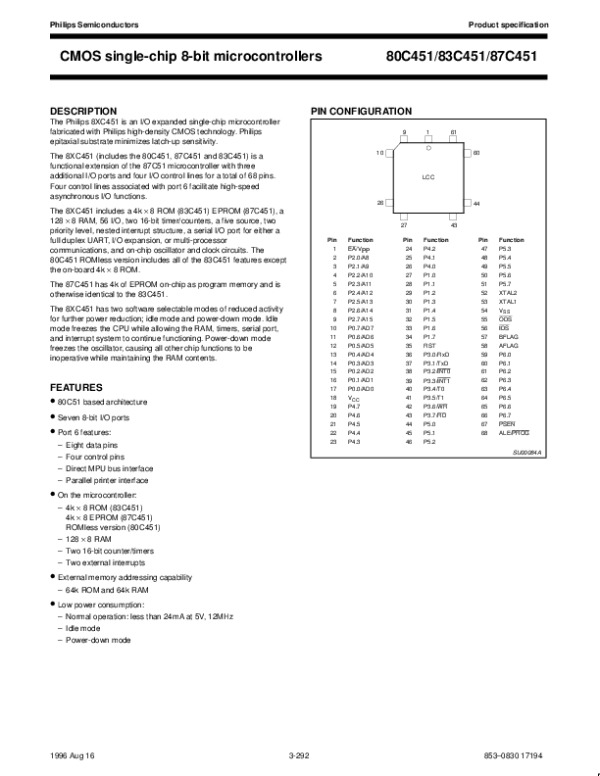 Просмотр технического описания на 80C451X