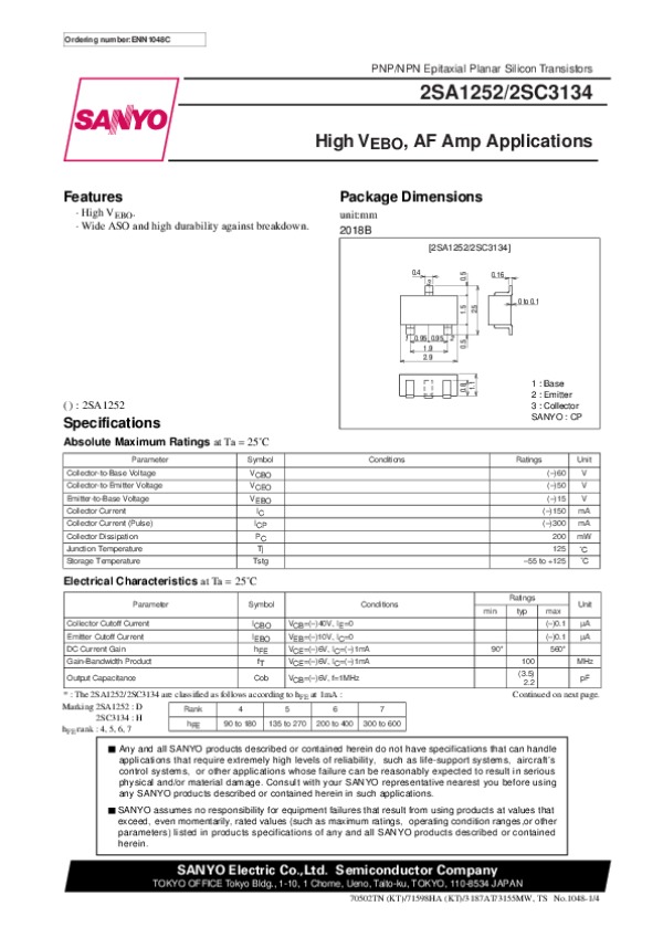 Datasheet 2SC3134: