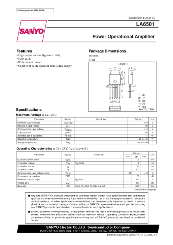 Datasheet LA6501: