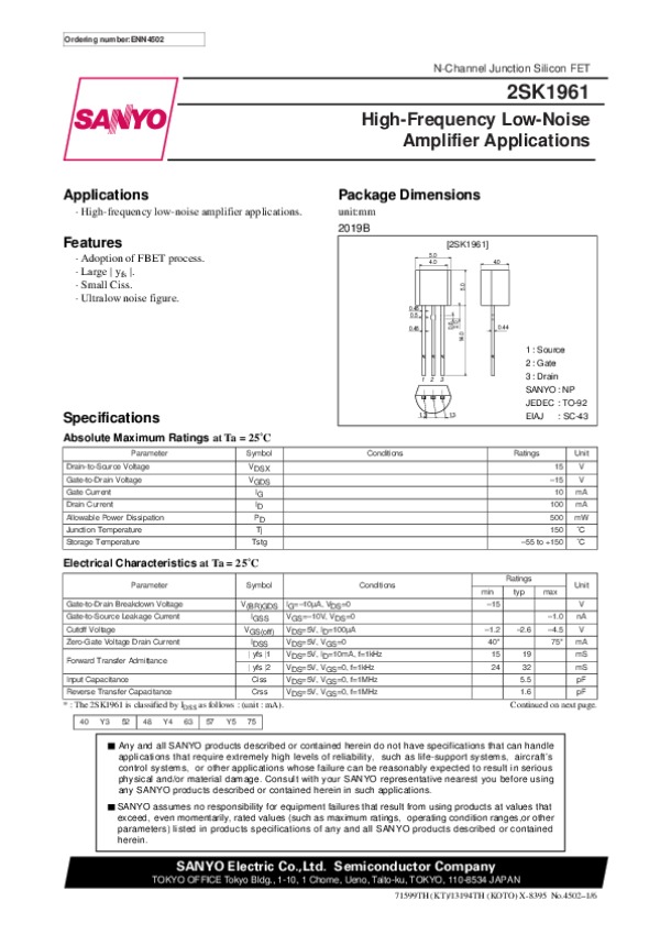 Datasheet 2SK1961: