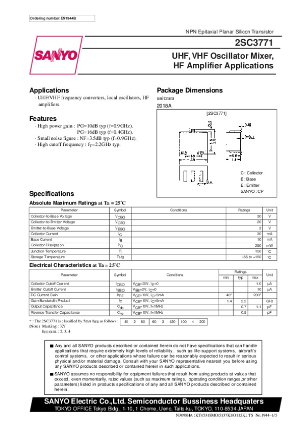 Datasheet 2SC3771: