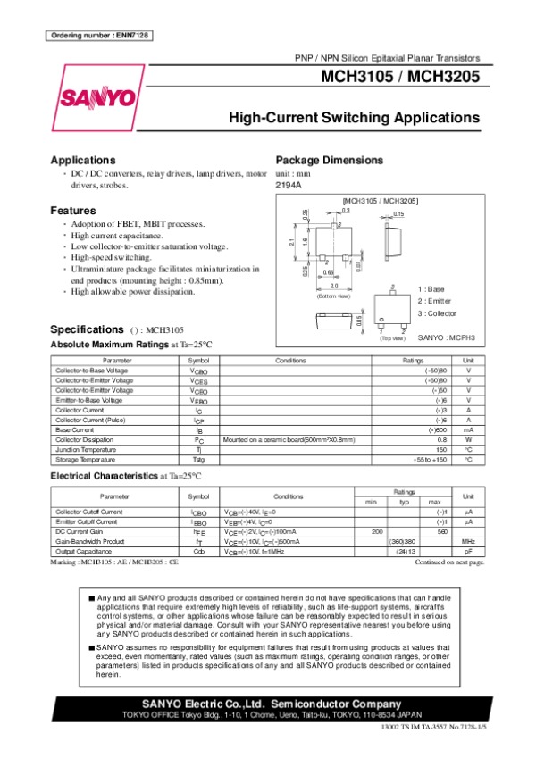 Datasheet MCH3205: