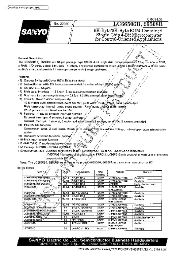 Datasheet LC66508B: