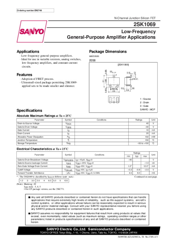 Datasheet 2SK1069: