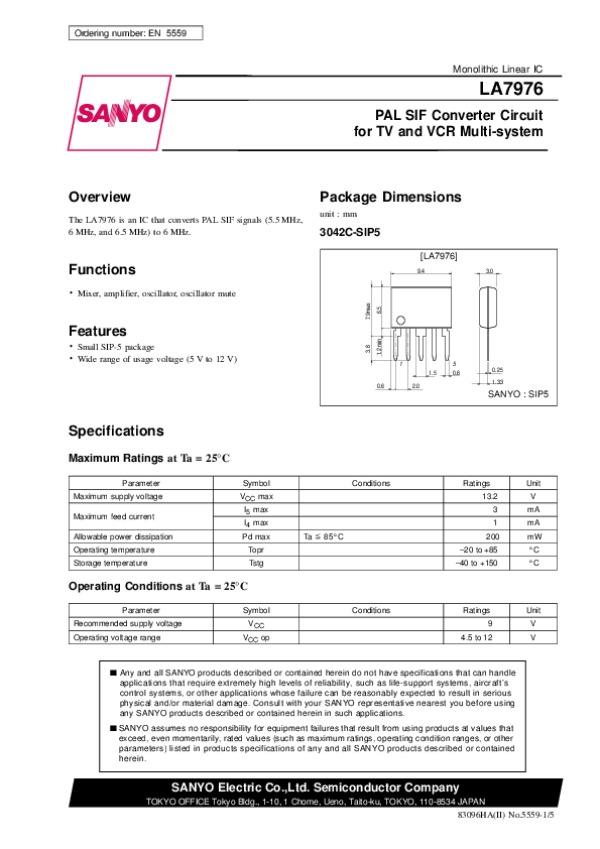 Datasheet LA7976: