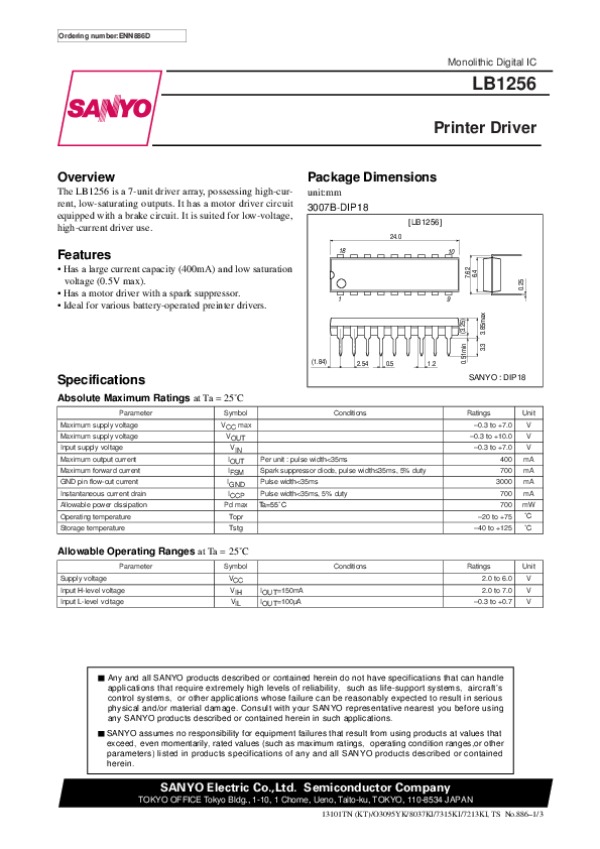 Datasheet LB1256: