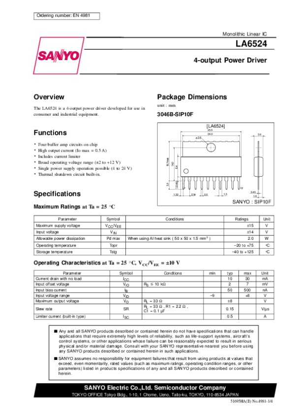 Datasheet LA6524: