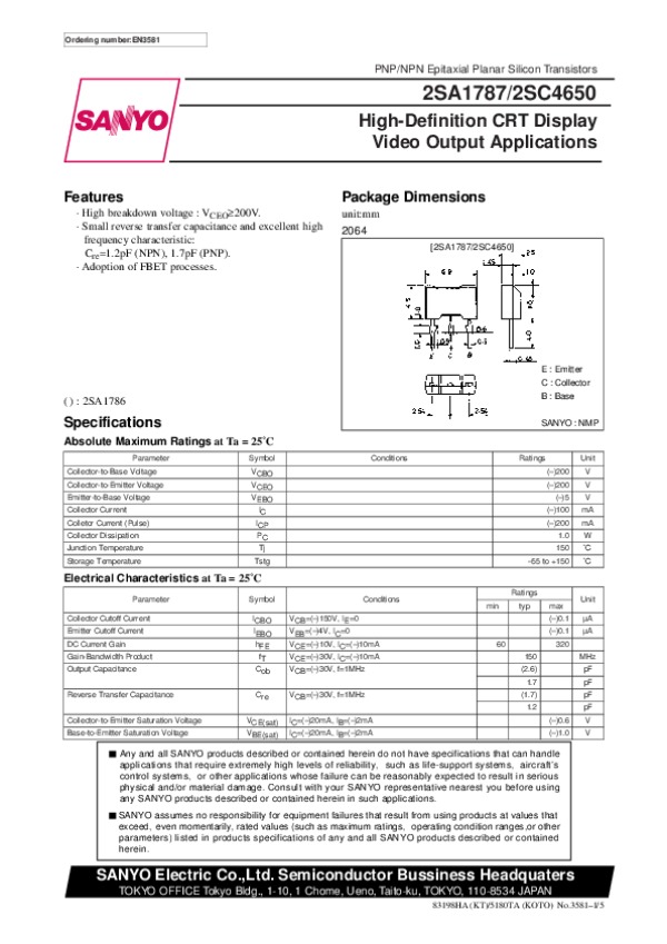 Просмотр технического описания на 2SC4650