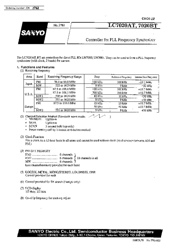 Просмотр технического описания на LC7020BT