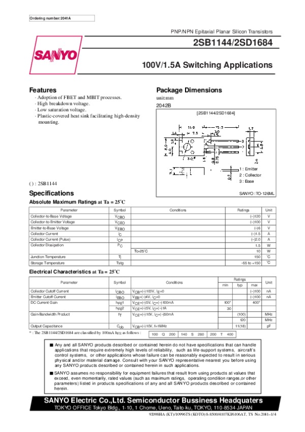 Datasheet 2SD1684:
