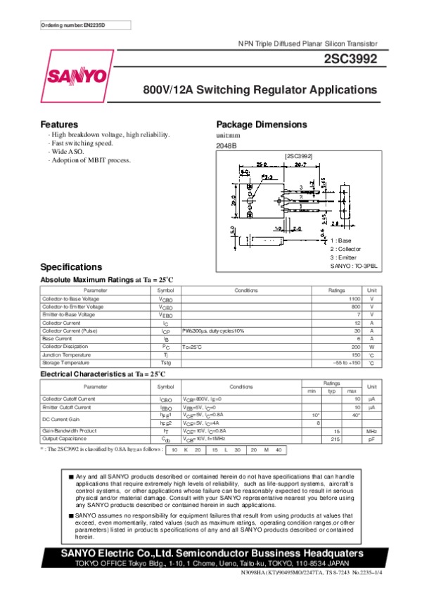 -> Просмотр технического описания на 2SC3992