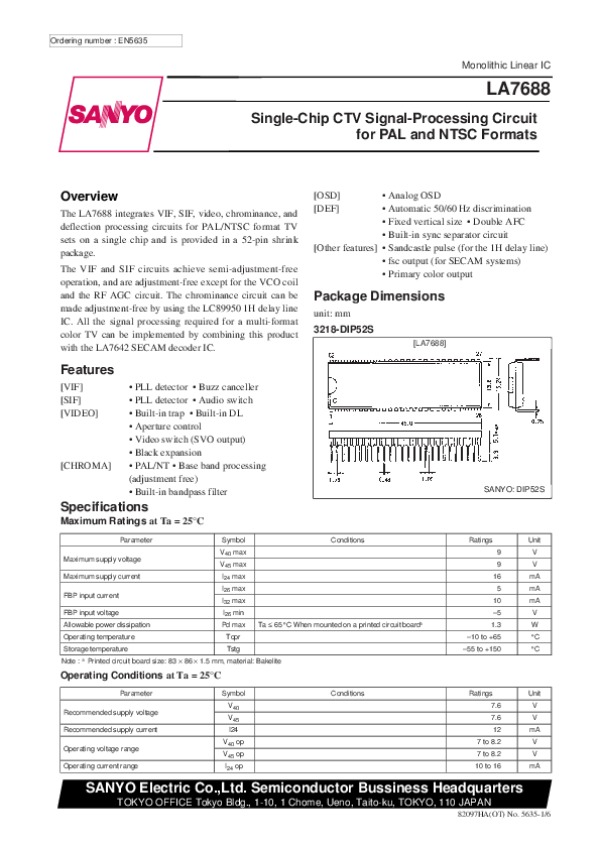 Просмотр технического описания на LA7688