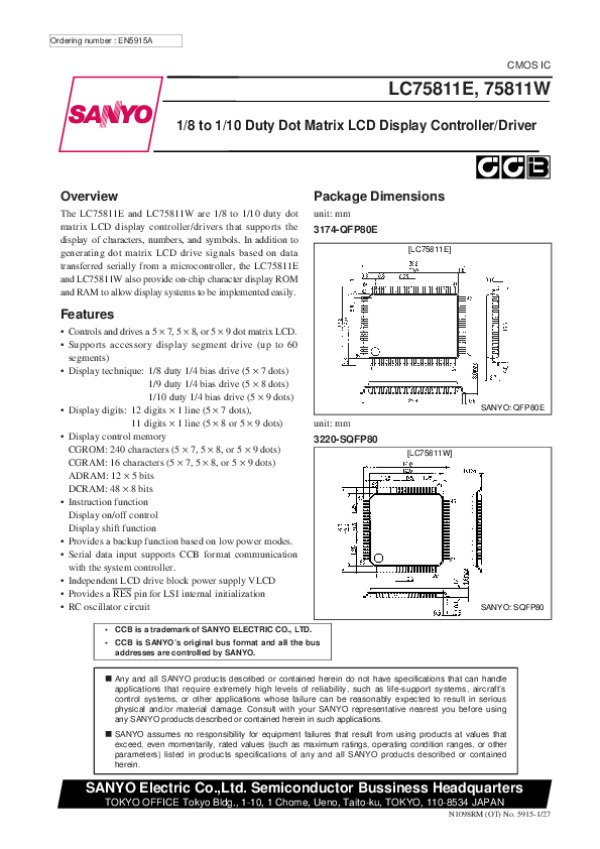 Datasheet LC75811W: