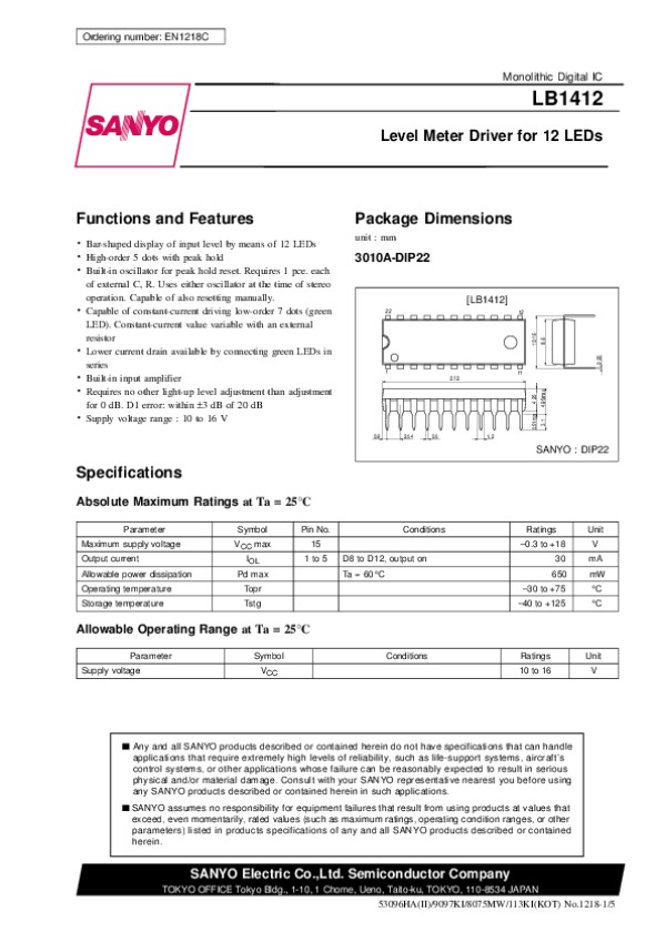 Datasheet LB1412: