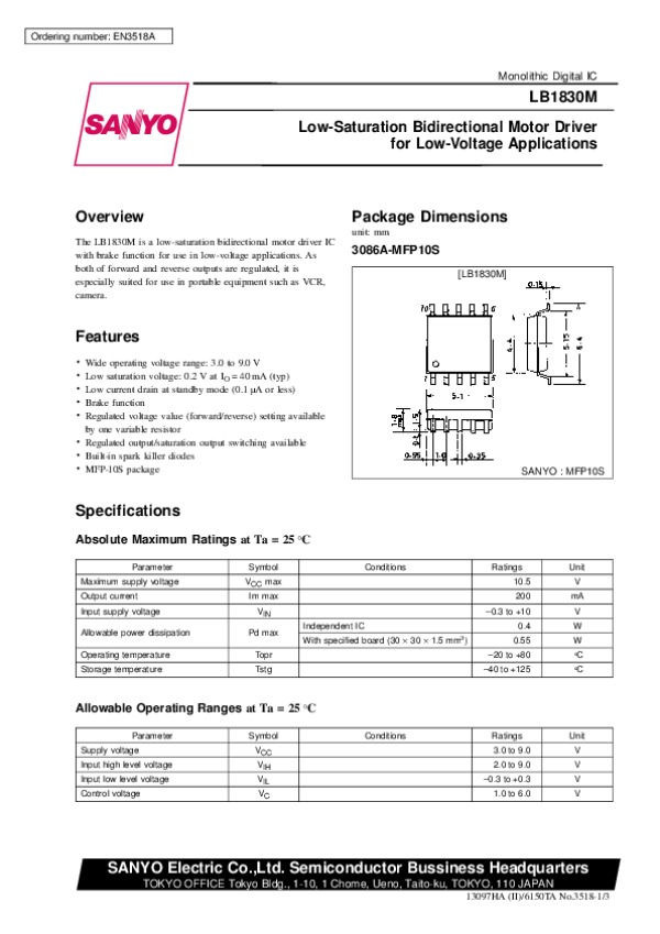 Datasheet LB1830M: