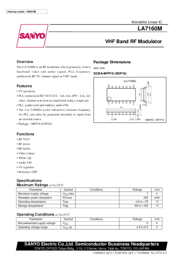 Datasheet LA7160M:
