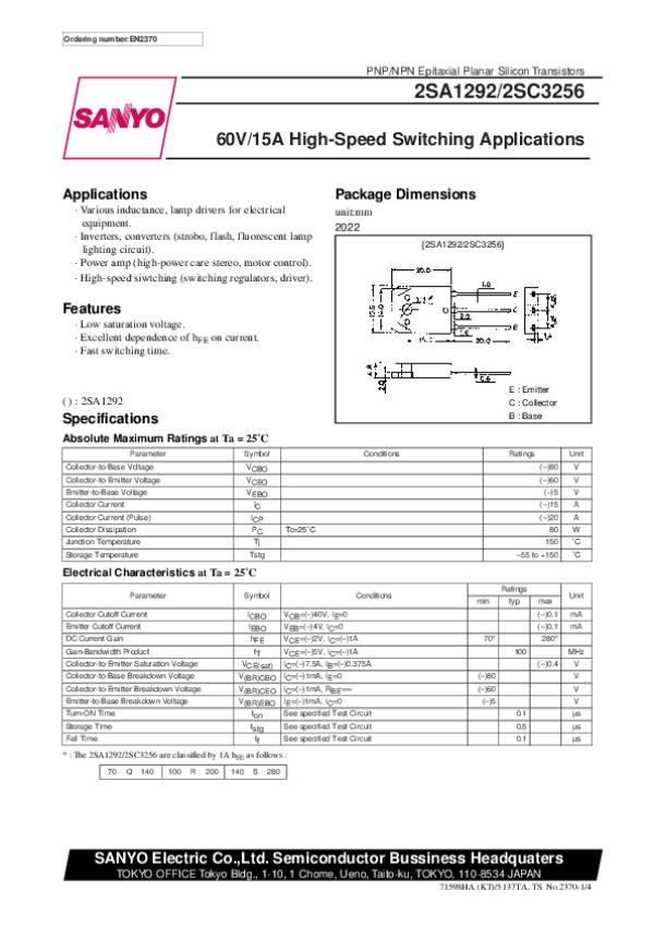 Просмотр технического описания на 2SC3256