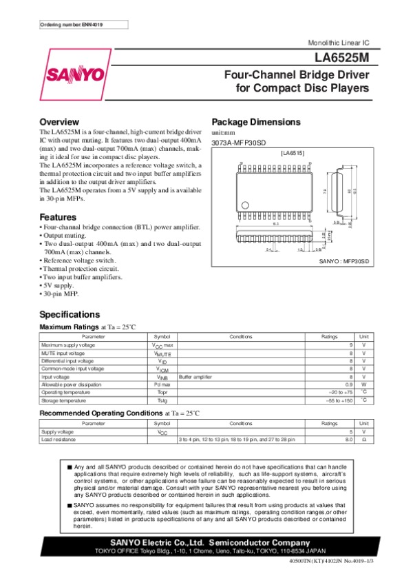 Datasheet LA6525M: