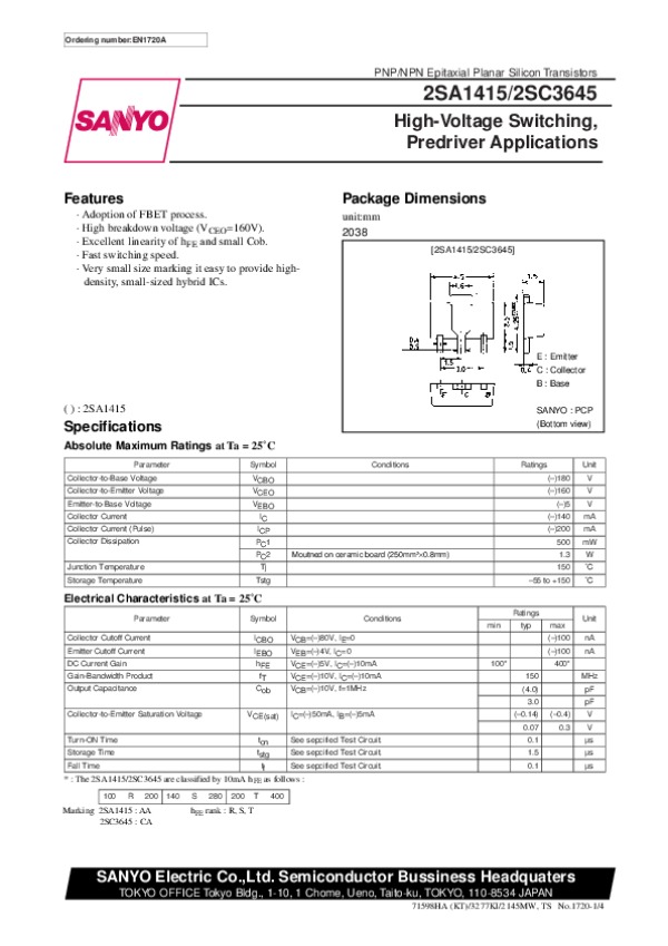 Просмотр технического описания на 2SA1415