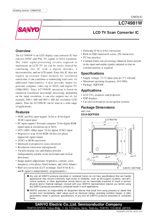 Просмотр технического описания на LC74981W