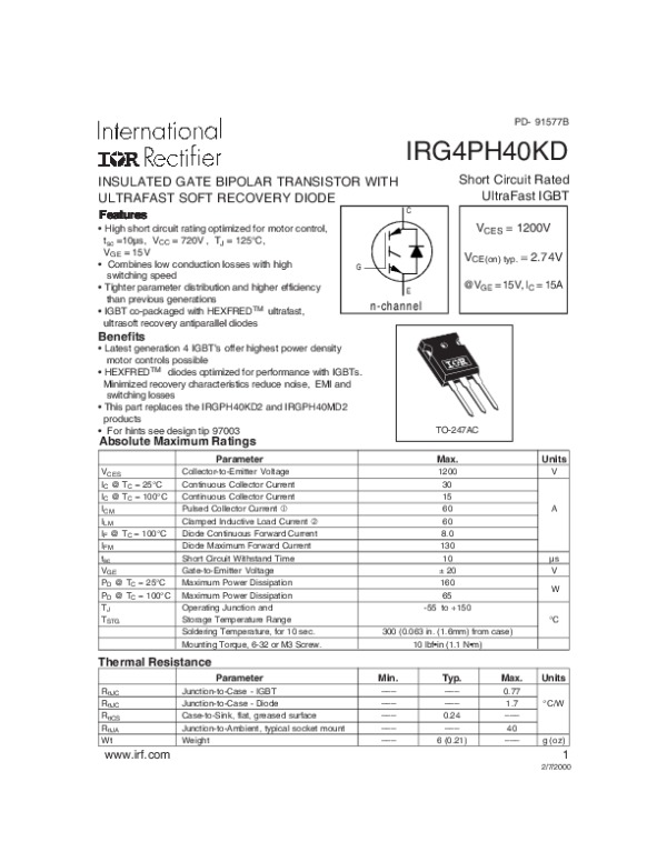 Главная -> Справочник -> Не указан -> Просмотр технического описания на IRG4PH40KD