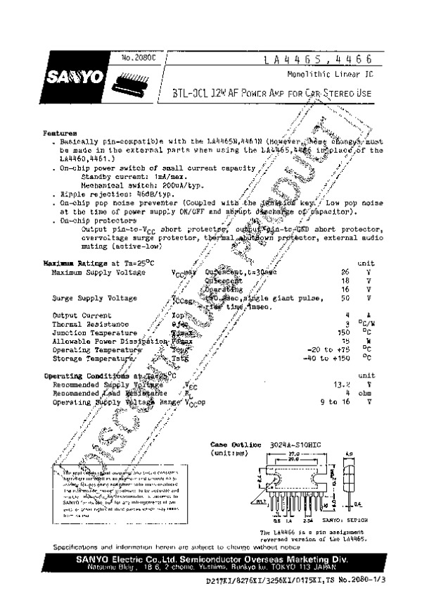 Просмотр технического описания на LA4466