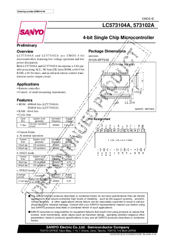 Просмотр технического описания на LC573104A