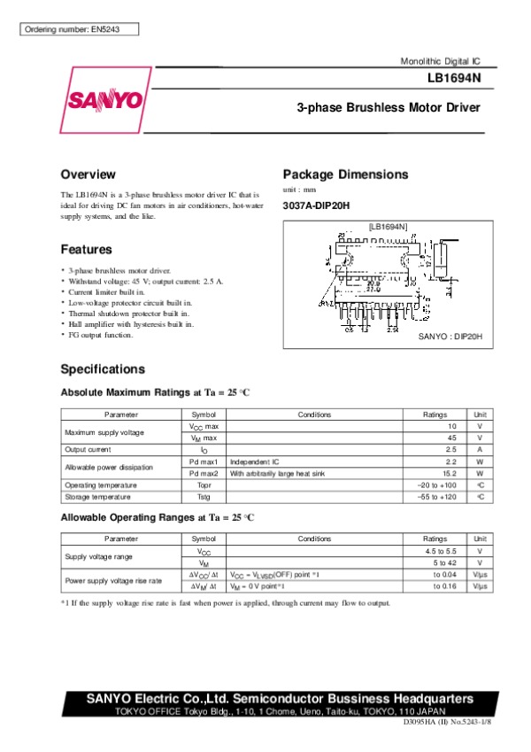 Datasheet LB1694N: