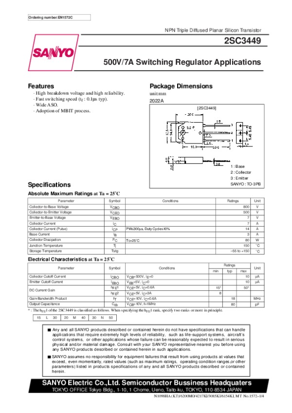 Просмотр технического описания на 2SC3449