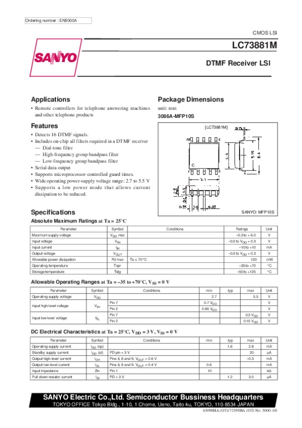 Просмотр технического описания на LC73881M