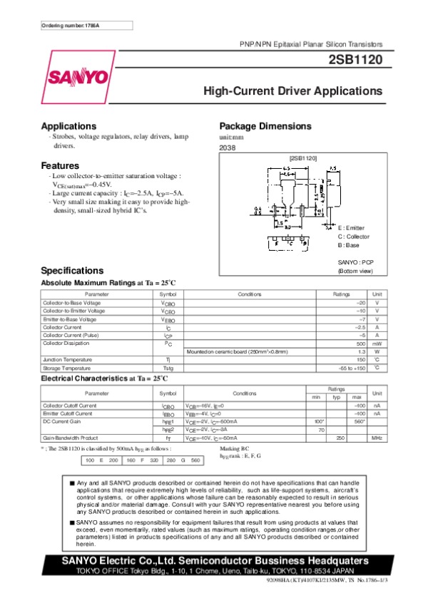 -> Просмотр технического описания на 2SB1120