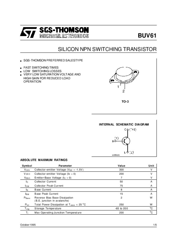 Datasheet BUV61: