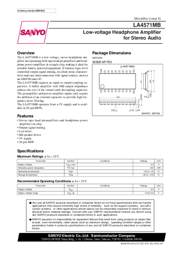Просмотр технического описания на LA4571MB