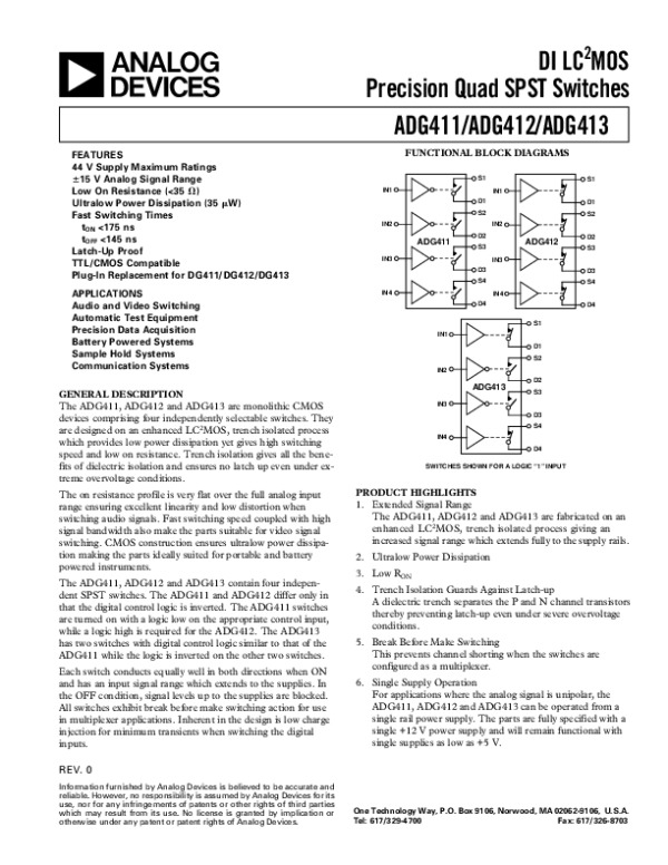 Просмотр технического описания на ADG4113