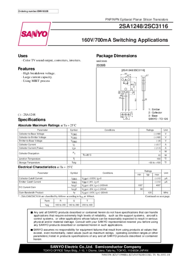 Datasheet 2SC3116: