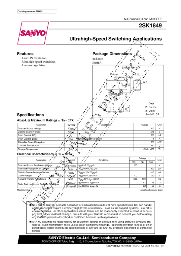 Datasheet 2SK1849: