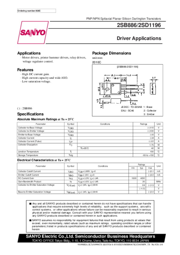 Datasheet 2SD1196:
