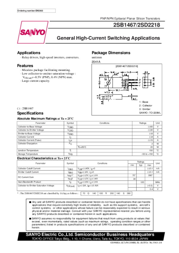 Datasheet 2SD2218: