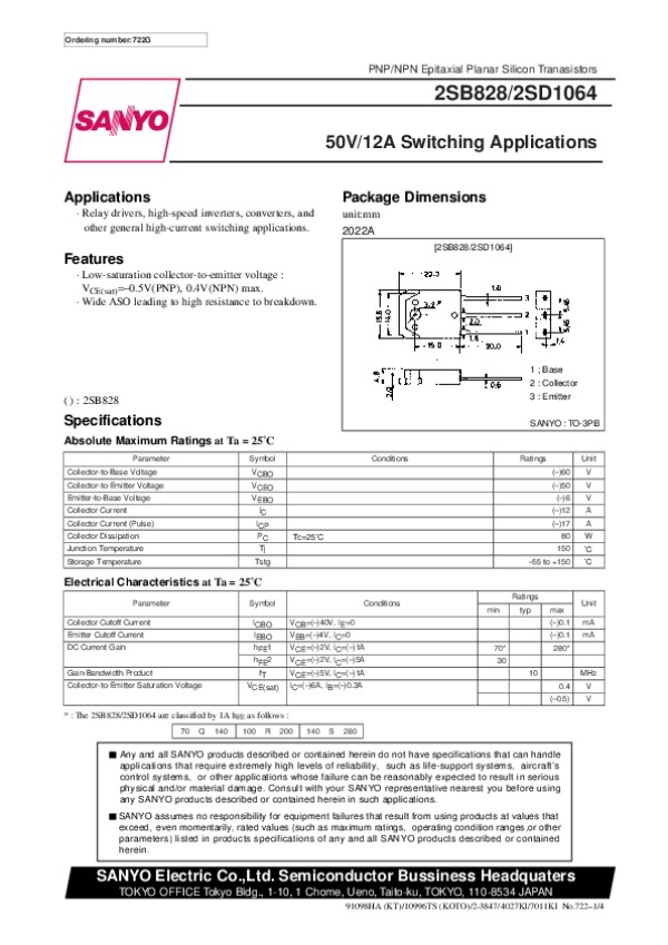 Datasheet 2SD1064: