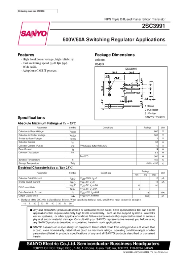 Просмотр технического описания на 2SC3991