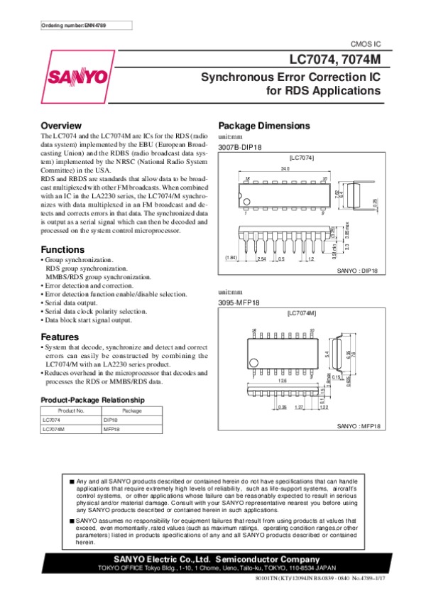 Datasheet LC7074M: