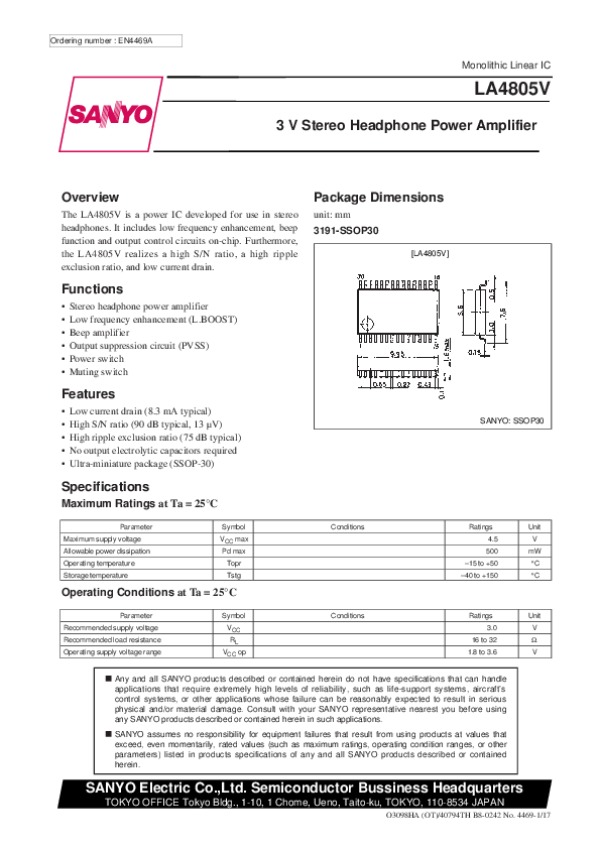 Datasheet LA4805V: