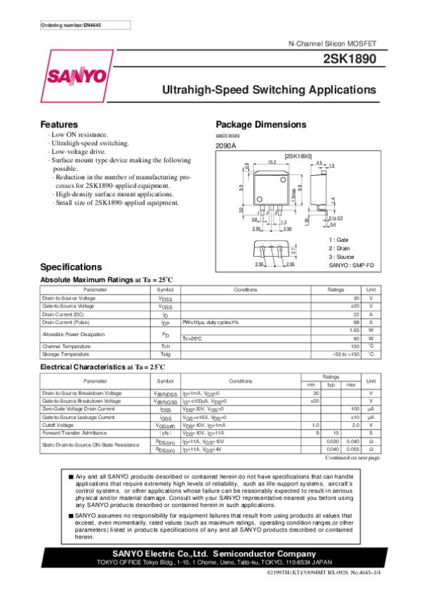 Просмотр технического описания на 2SK1890