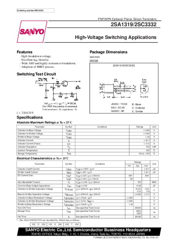Datasheet 2SC3332: