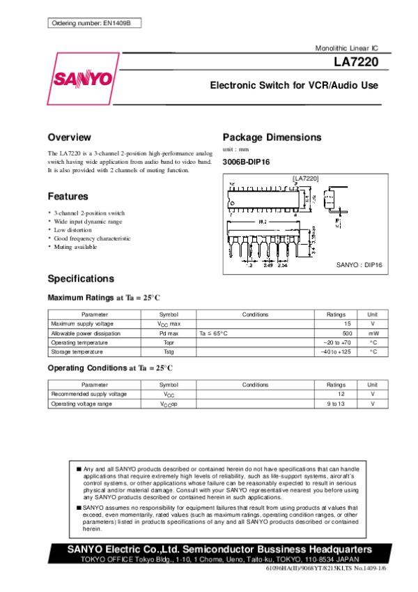 Datasheet LA7220:
