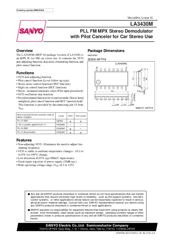 Datasheet LA3430M: